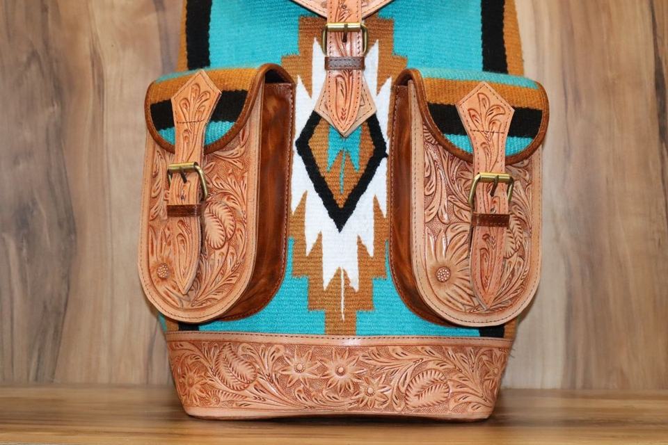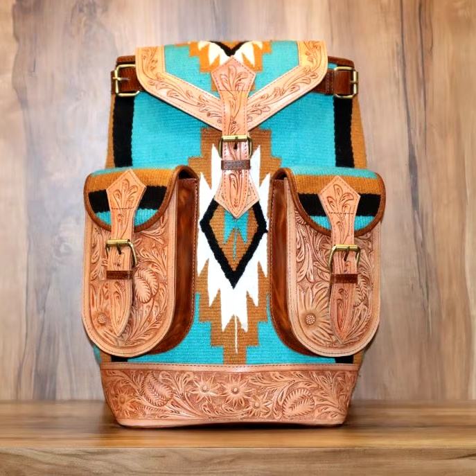 Produit:Sac à dos en cuir sculpté aztèque