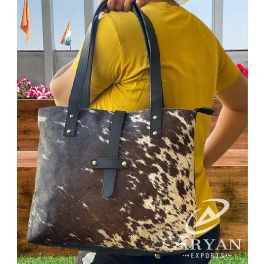 Western Handmade Real Hair On Cowhide Leather Large Tote Bag Vintage Cowgirl Stylish 100% Cowhide Leather Luxury Shopping Purses
