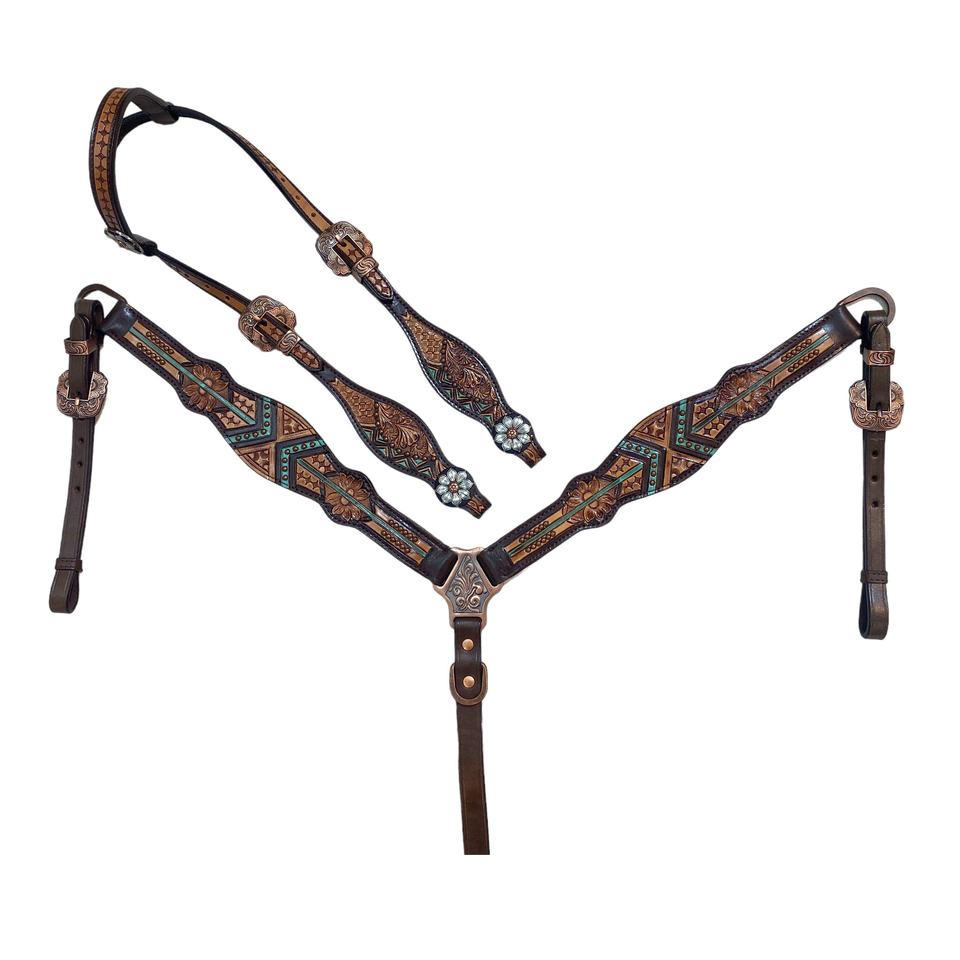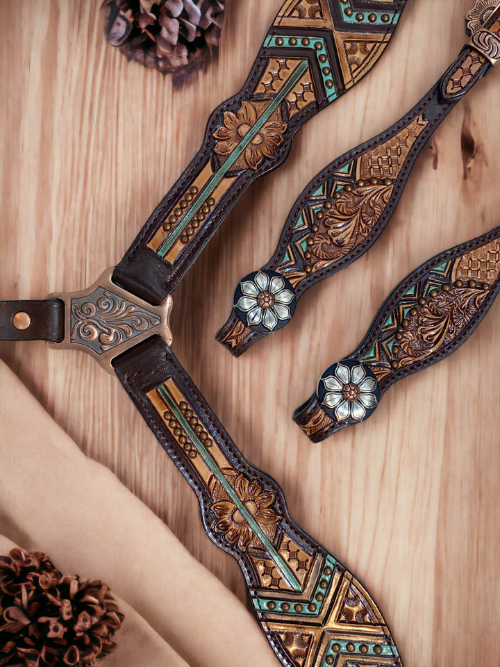 Ensemble de têtière et de collier de poitrail Western en cuir de vachette de qualité supérieure, léger, tendance, avec des motifs perlés personnalisés, équipement équestre de saison