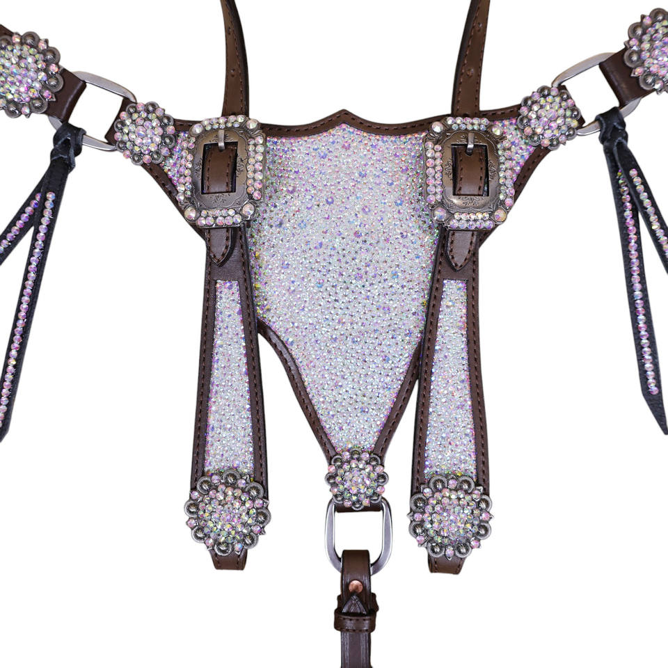Western Horse Racing AB Clear Stones Decorated Argentina Cowhide Leather Horse Headstall & Breast Collar Tack Set at Sale Price
