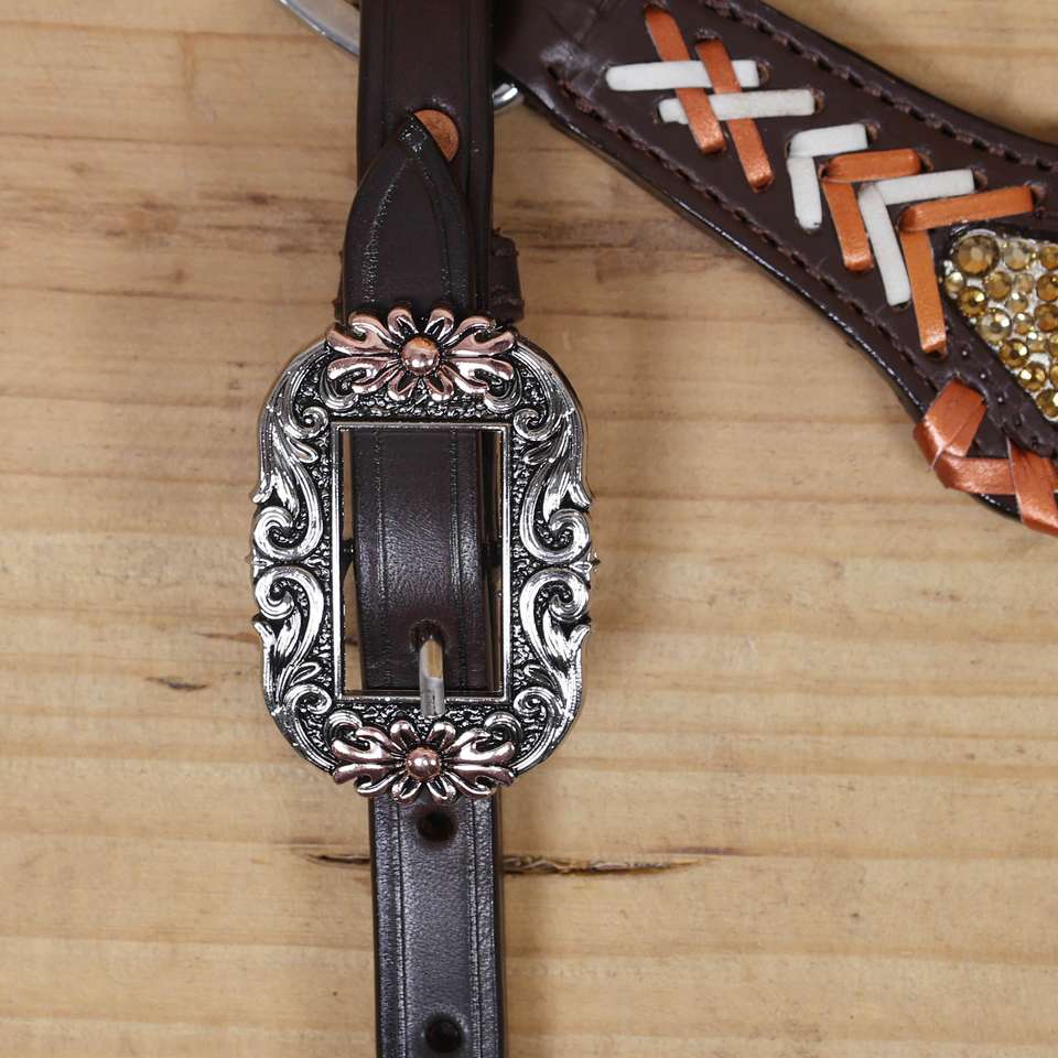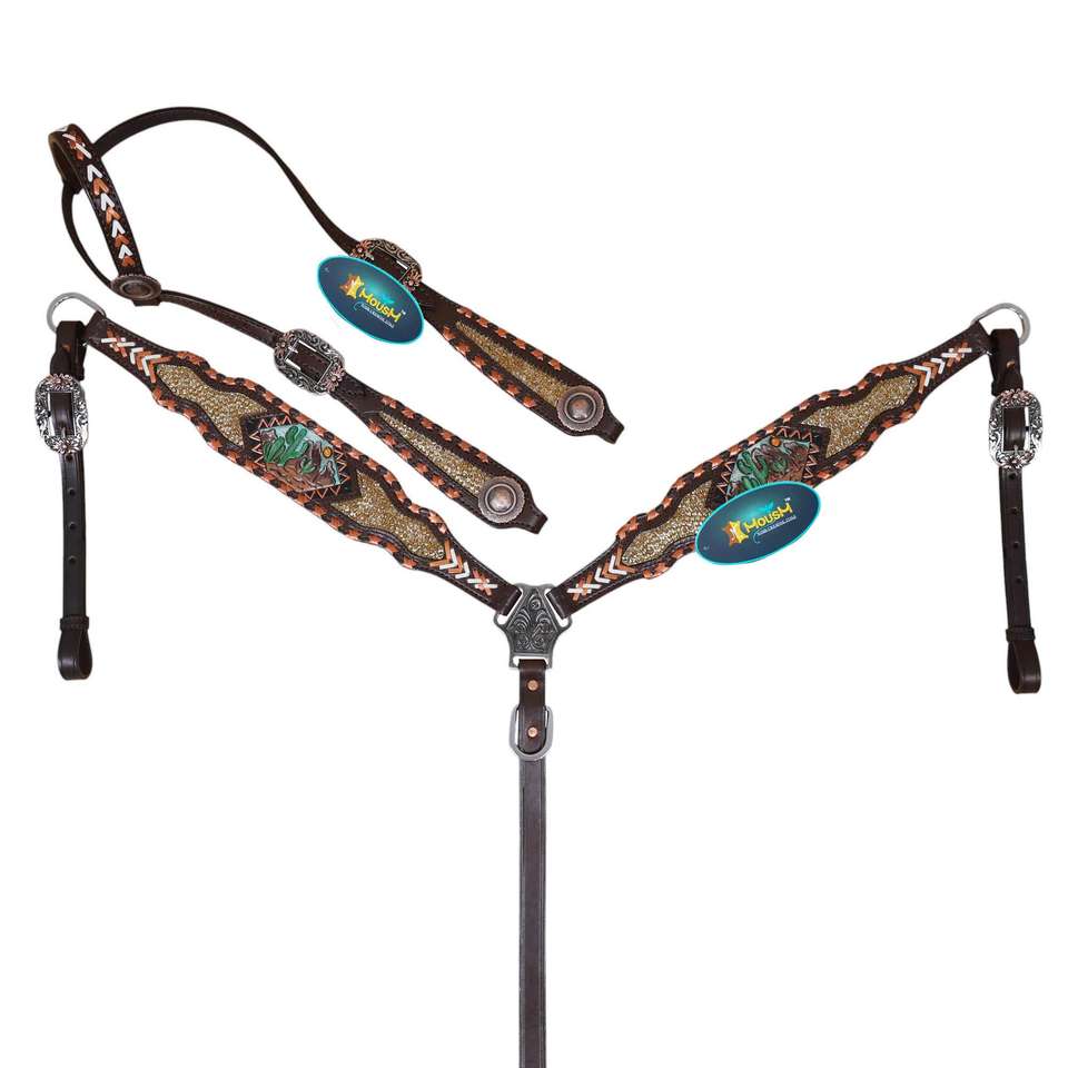 Western Horse Trail Leather Bridle Cross & Snake Headstall Breast Collar Plate Set FQH Size All New Economy Line Tack Set