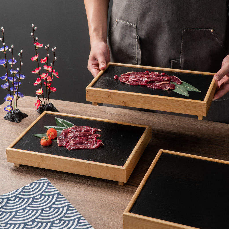 Assiettes en ardoise naturelle occidentale, carrées et solides, pour sushi, steak, barbecue, plateau à fromage, pizza, fruits, plateau à thé