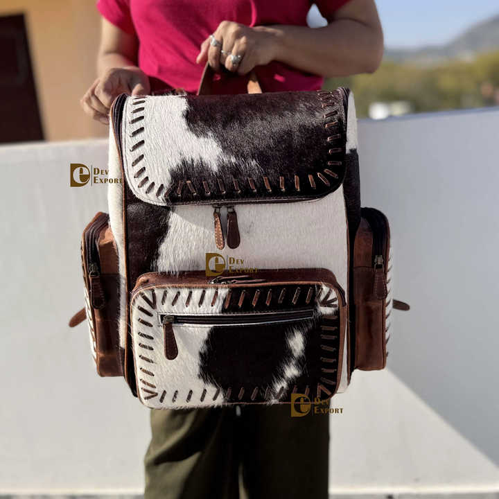 Sac à dos en cuir de vachette à poils, motif western, sac à dos élégant en fourrure, sacs d'école unisexes, sac de créateur unique