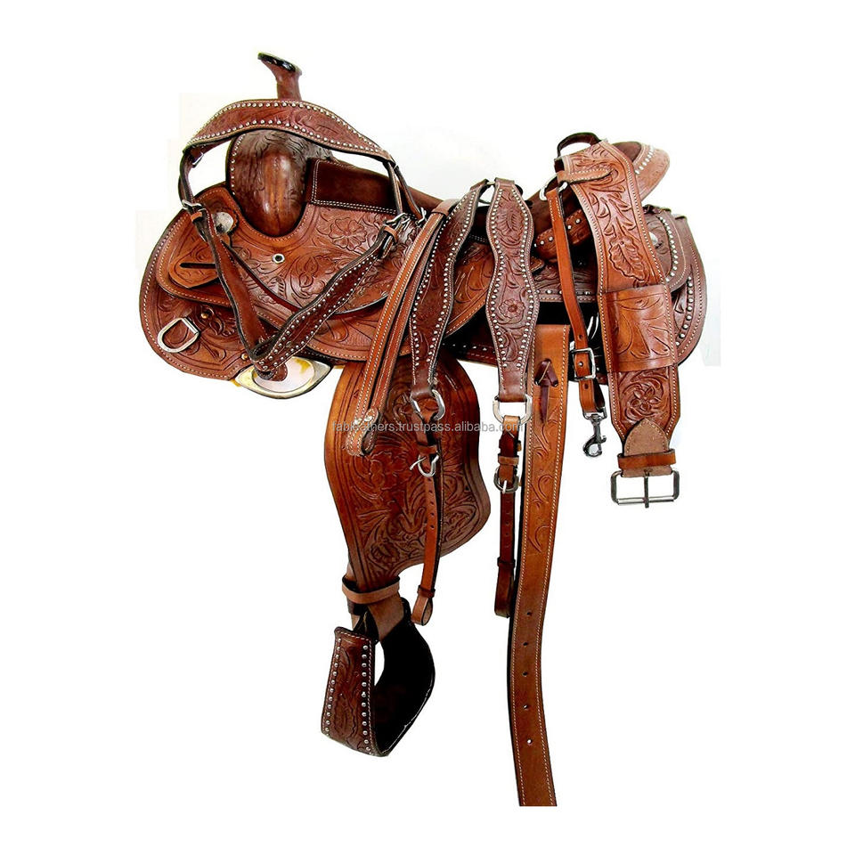 Handmade Genuine Leather Western Barrel Racing Floral Horse Saddle