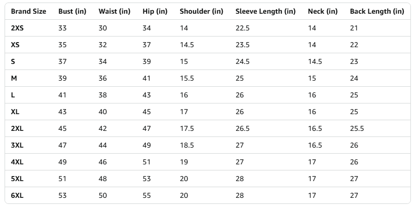 Size chart:Client Requirement