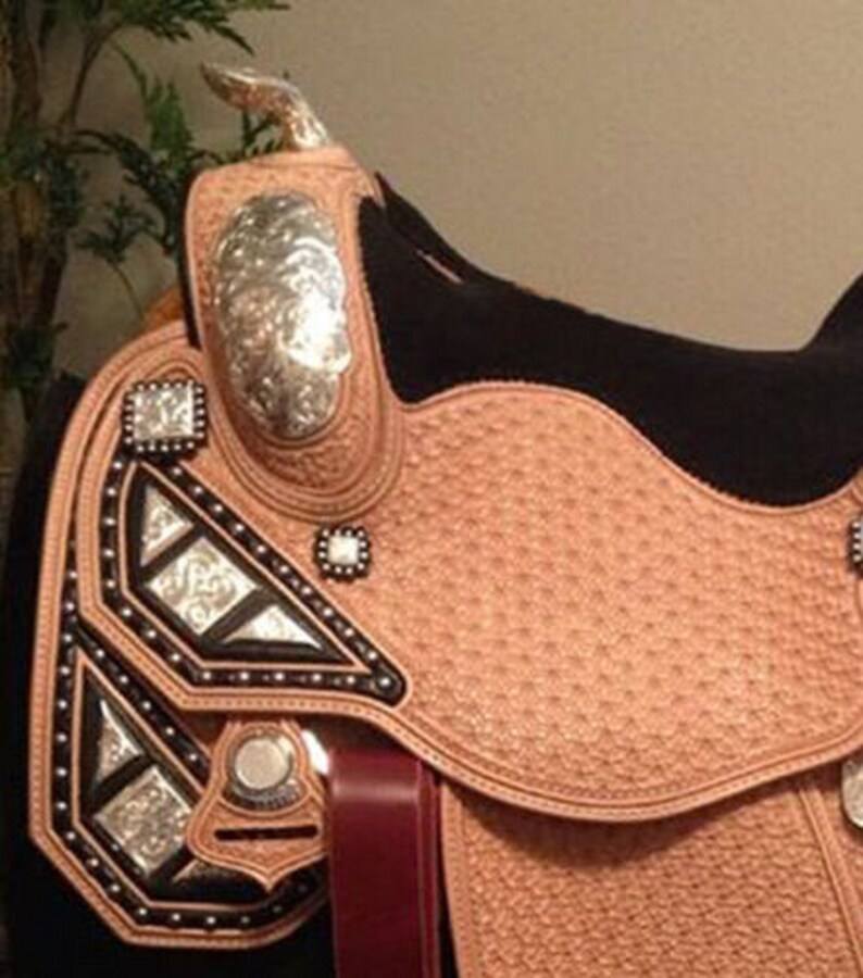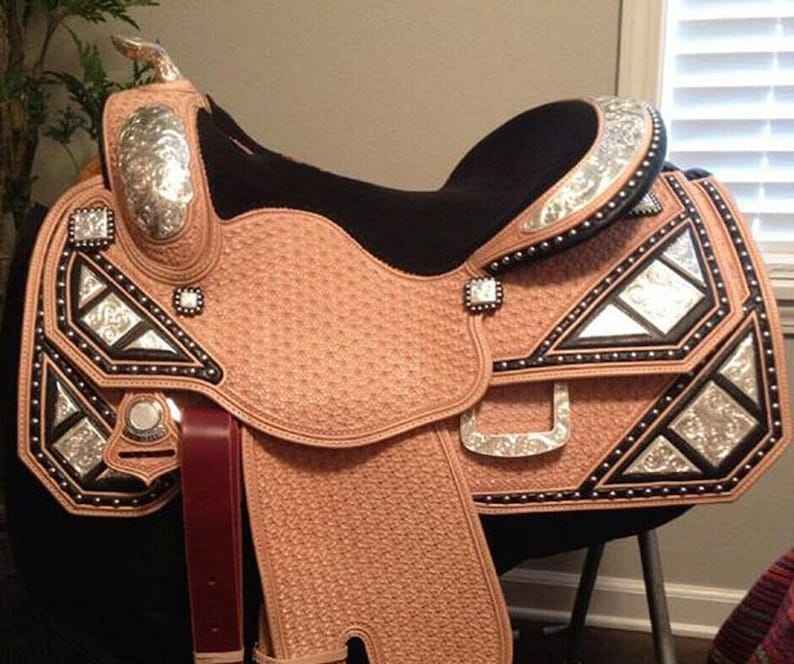 Selle de cheval de course Western Silver Barrel Selle de cheval portable en cristal brodé avec accessoires assortis custo