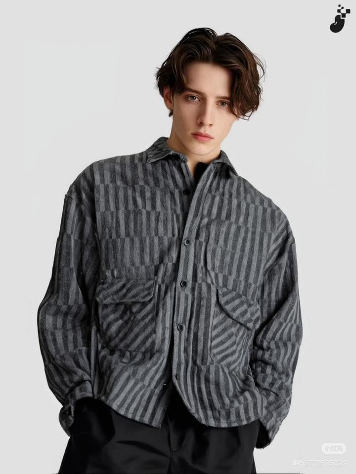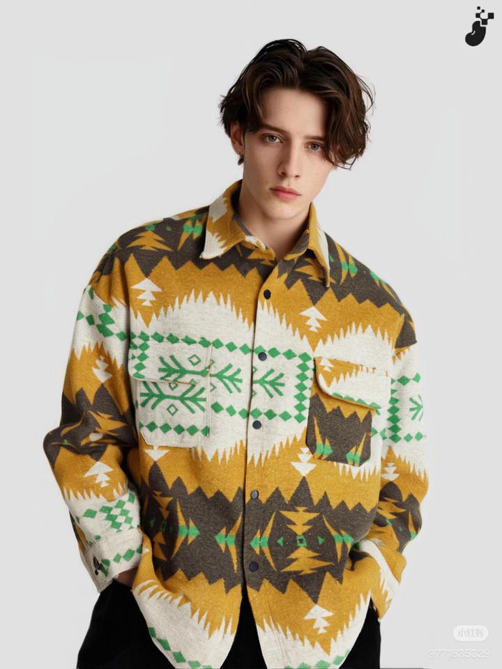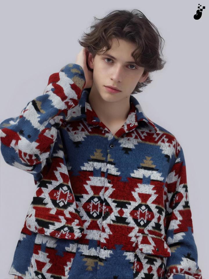 Veste Aztèque de Style Occidental pour Homme Manches Longues Géométriques Automne Hiver Laine Chaude Ethnique Vintage Surchemise Veste Jacquard