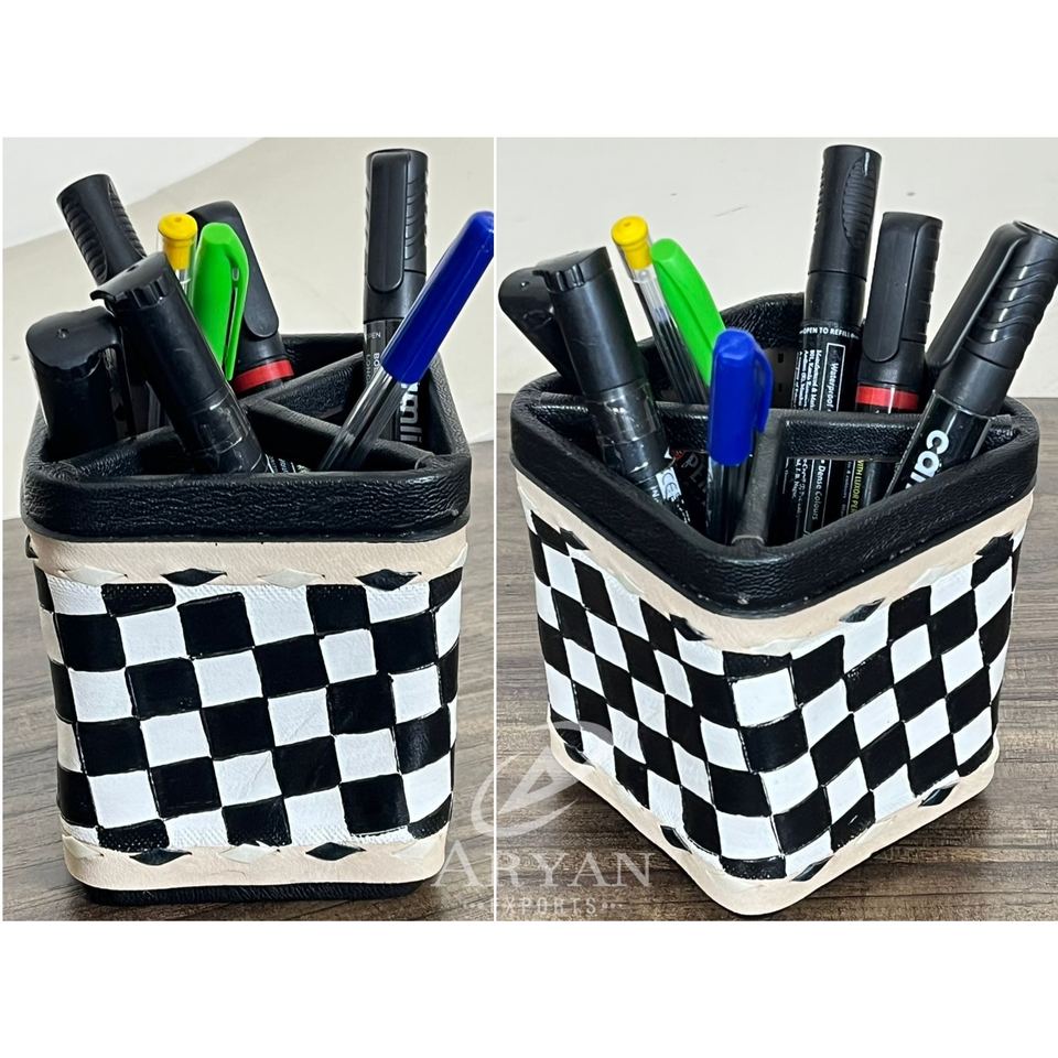 Product name:Hand Tooled Checkered Leather Pen Holder Storage Box