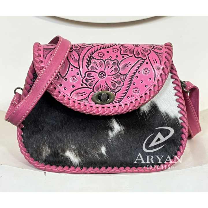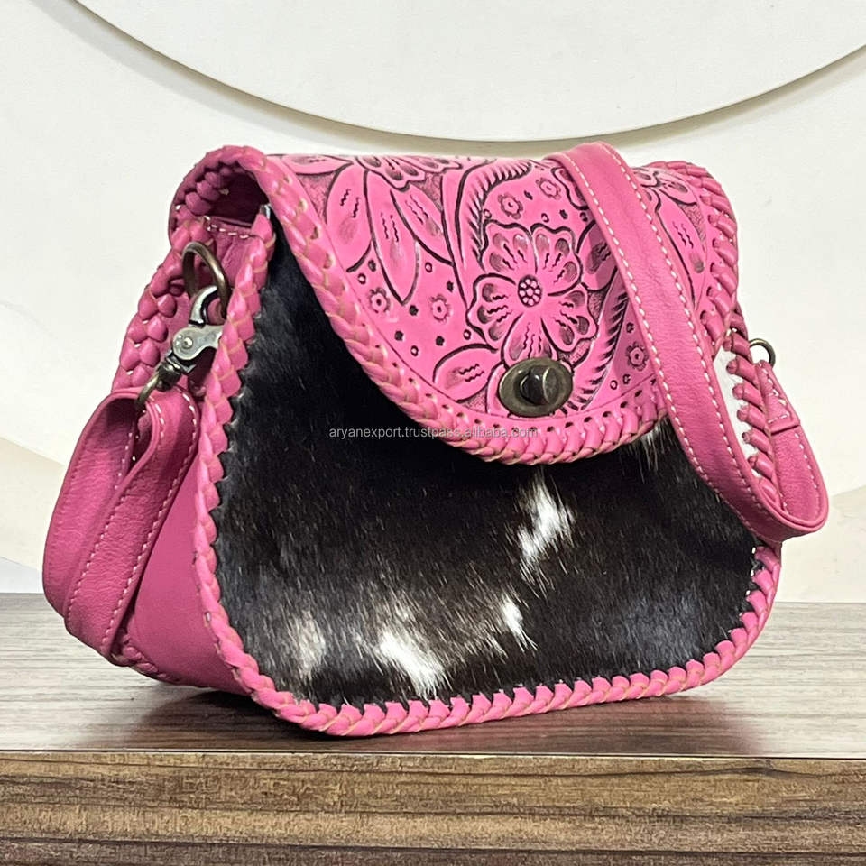 Sac bandoulière en cuir de vachette artisanal de style occidental, motif floral gravé, sac à main bohème, sangle réglable, sac à main vintage pour femme