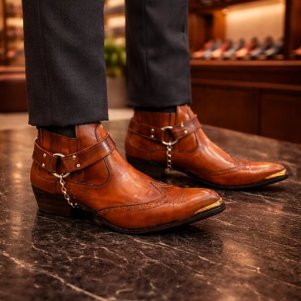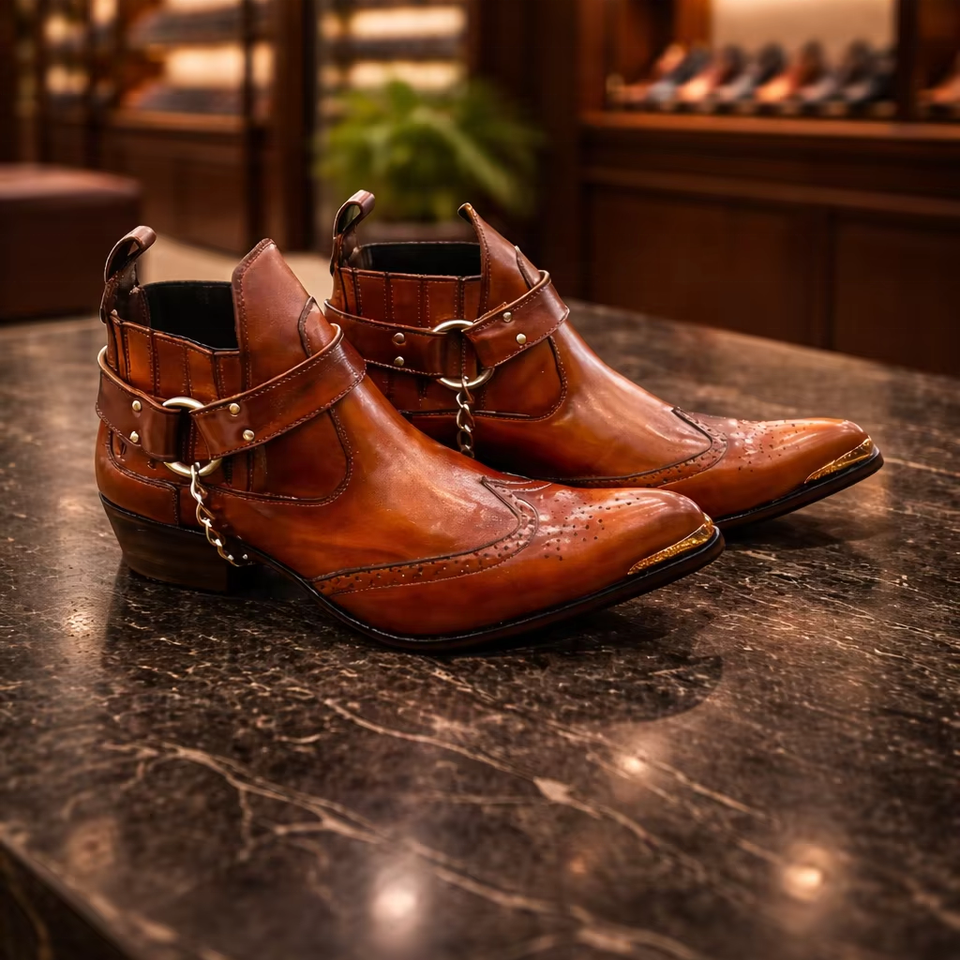 Bottes de cowboy faites à la main de style occidental pour hommes, longues bottes d'équitation en cuir véritable avec sangle à boucle, printemps, été, automne, hiver