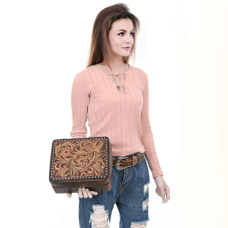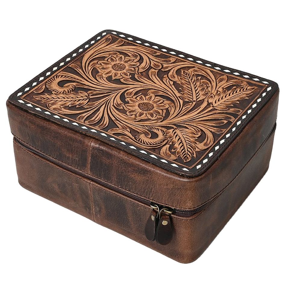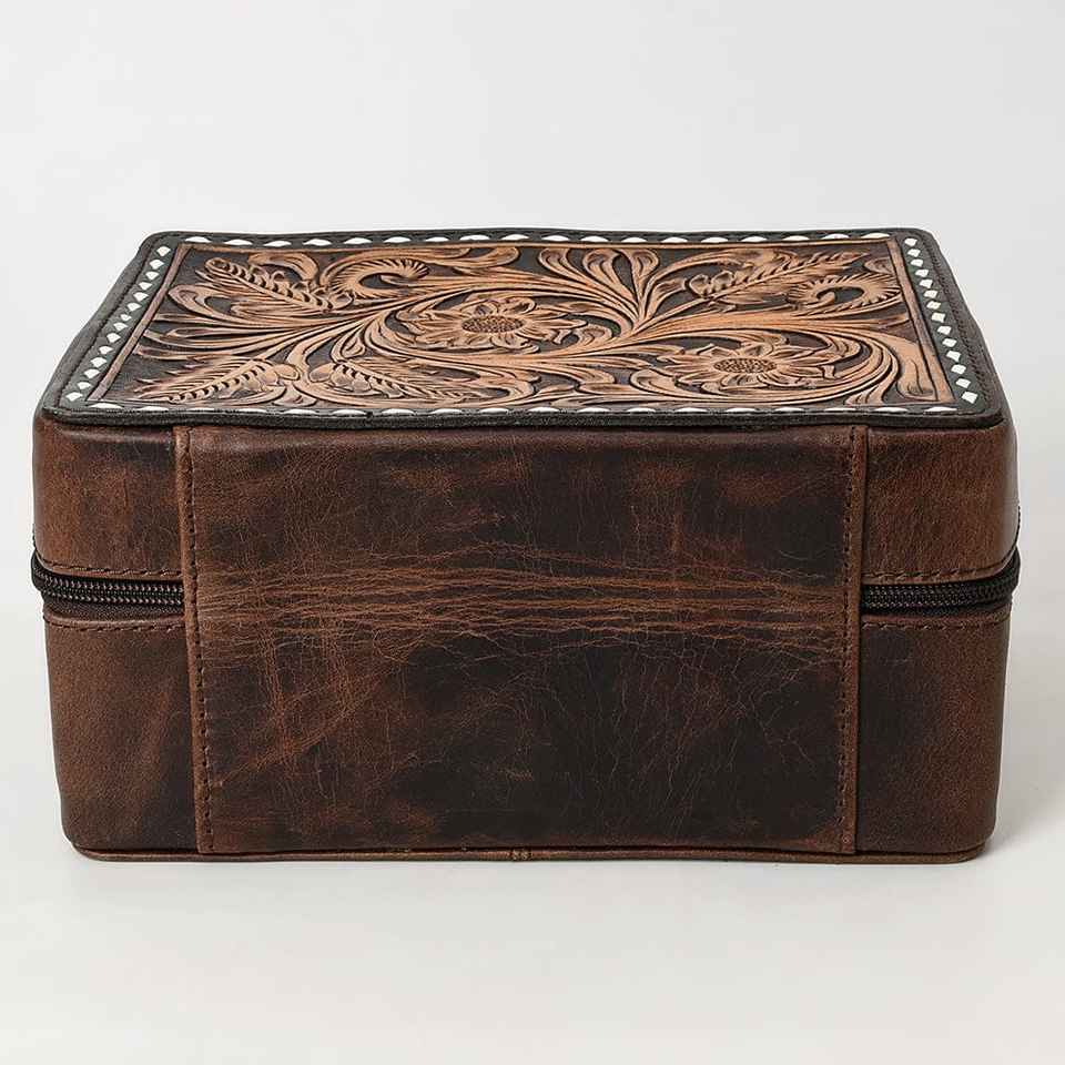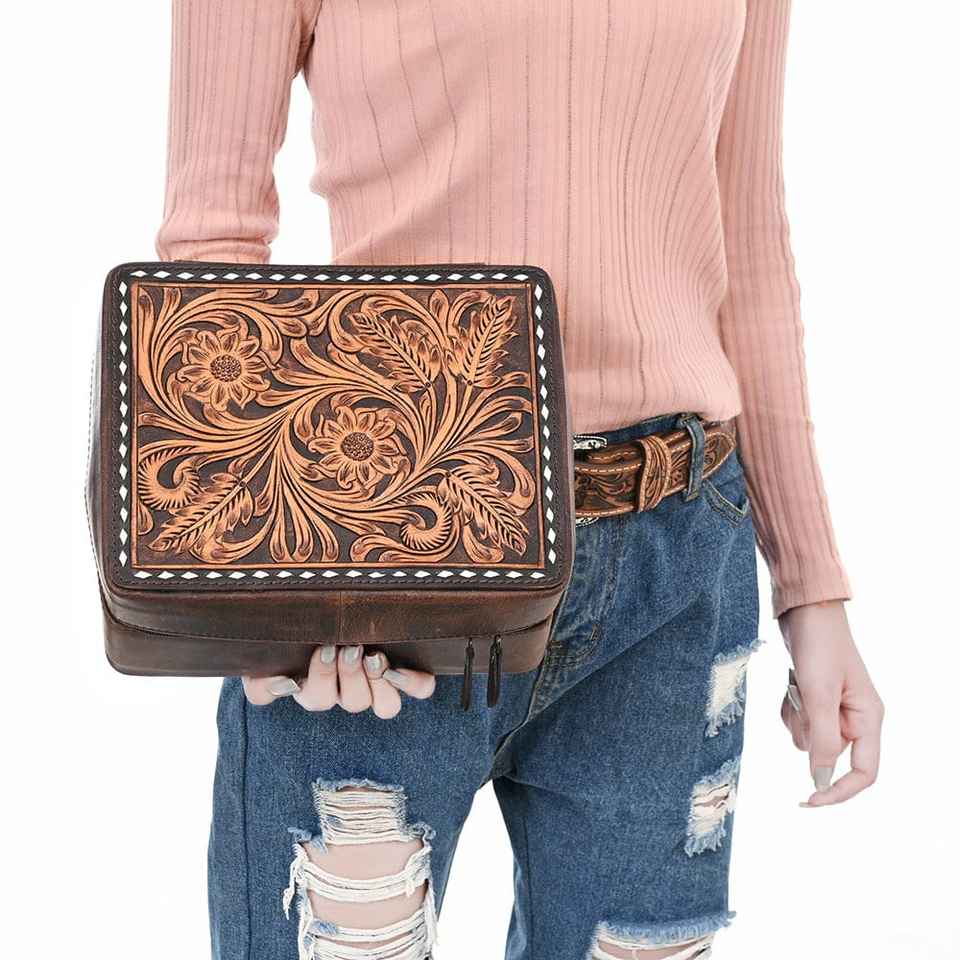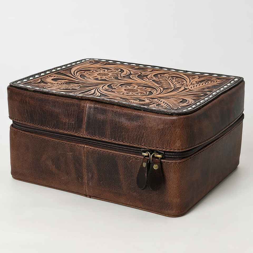 Boîte à bijoux et accessoires en cuir de style occidental étui à fermeture éclair en cuir de vachette usiné à la main étui organisateur à fermeture éclair en cuir de vachette vintage occidental