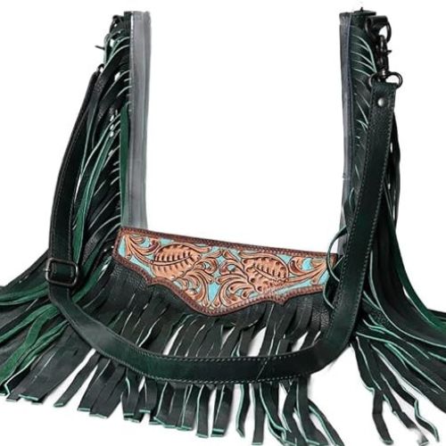 Sacs de stade transparents à franges en cuir repoussé fabriqués à la main de style occidental Sac en cuir repoussé de couleur