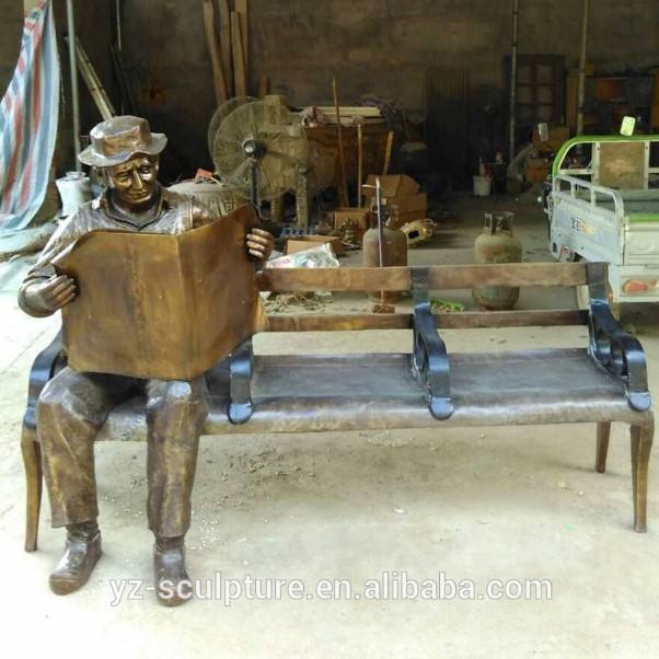 Name:life size bronze old man sitting on the bench sculptures