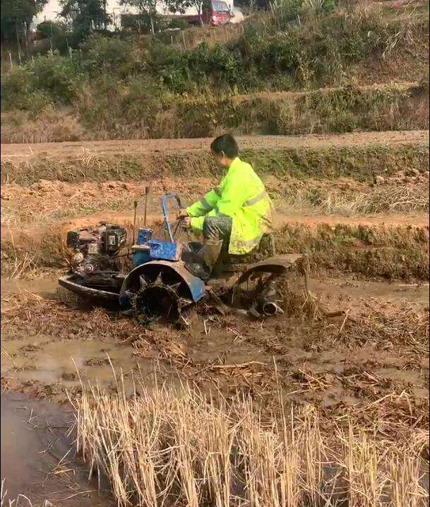 Motoculteur pour rizières et zones humides avec moteur, cultivateur flottant polyvalent