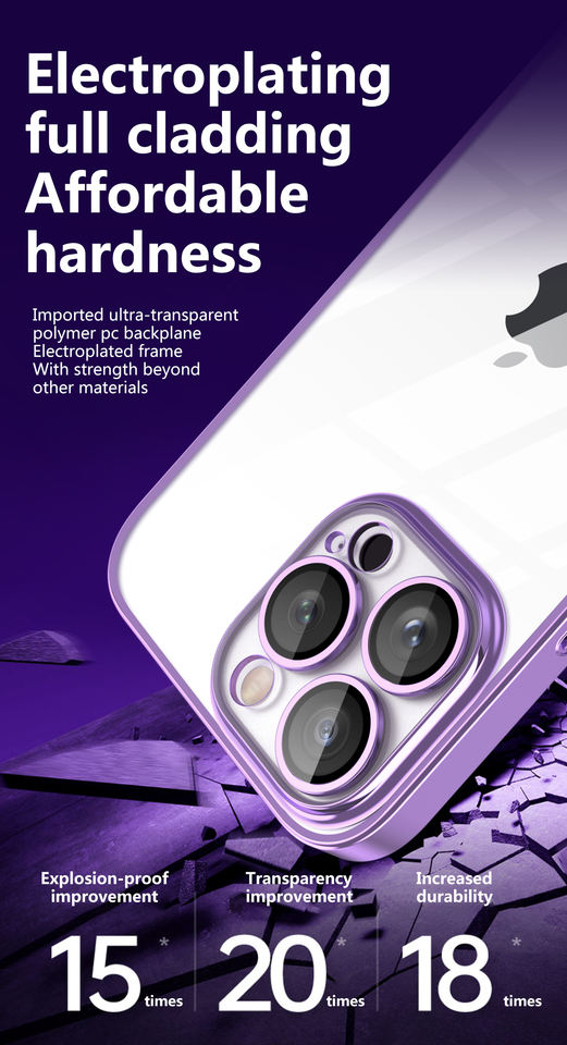 Étui de téléphone portable Weview de luxe, en PC transparent électro-plaqué, résistant aux chocs, anti-poussière, avec protection d'objectif d'appareil photo