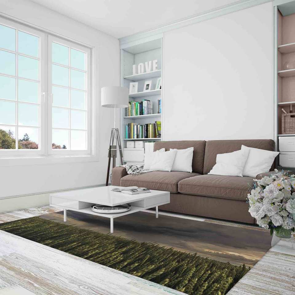 Tapis Paysage Champêtre : Vue Naturelle Orageuse, Tapis Imprimé, Tapis en Chenille