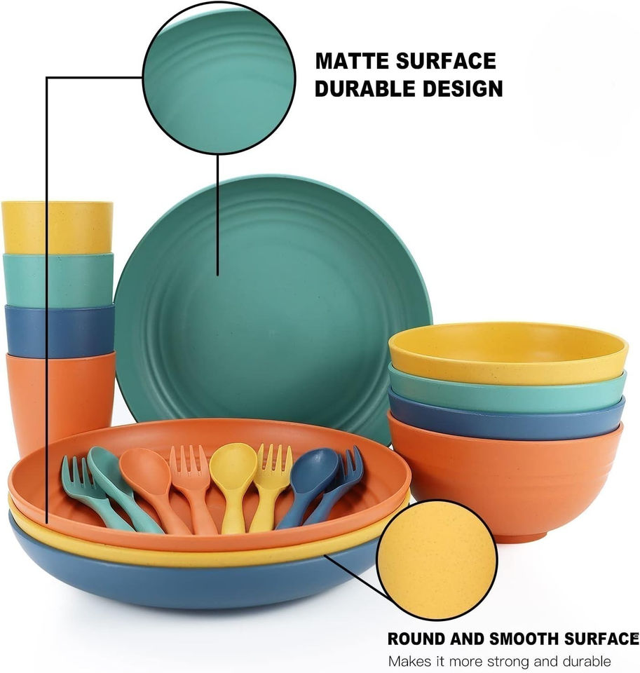 Services de table écologiques réutilisables en paille de blé, assiettes, tasses et bols incassables pour enfants, avec couleur personnalisable