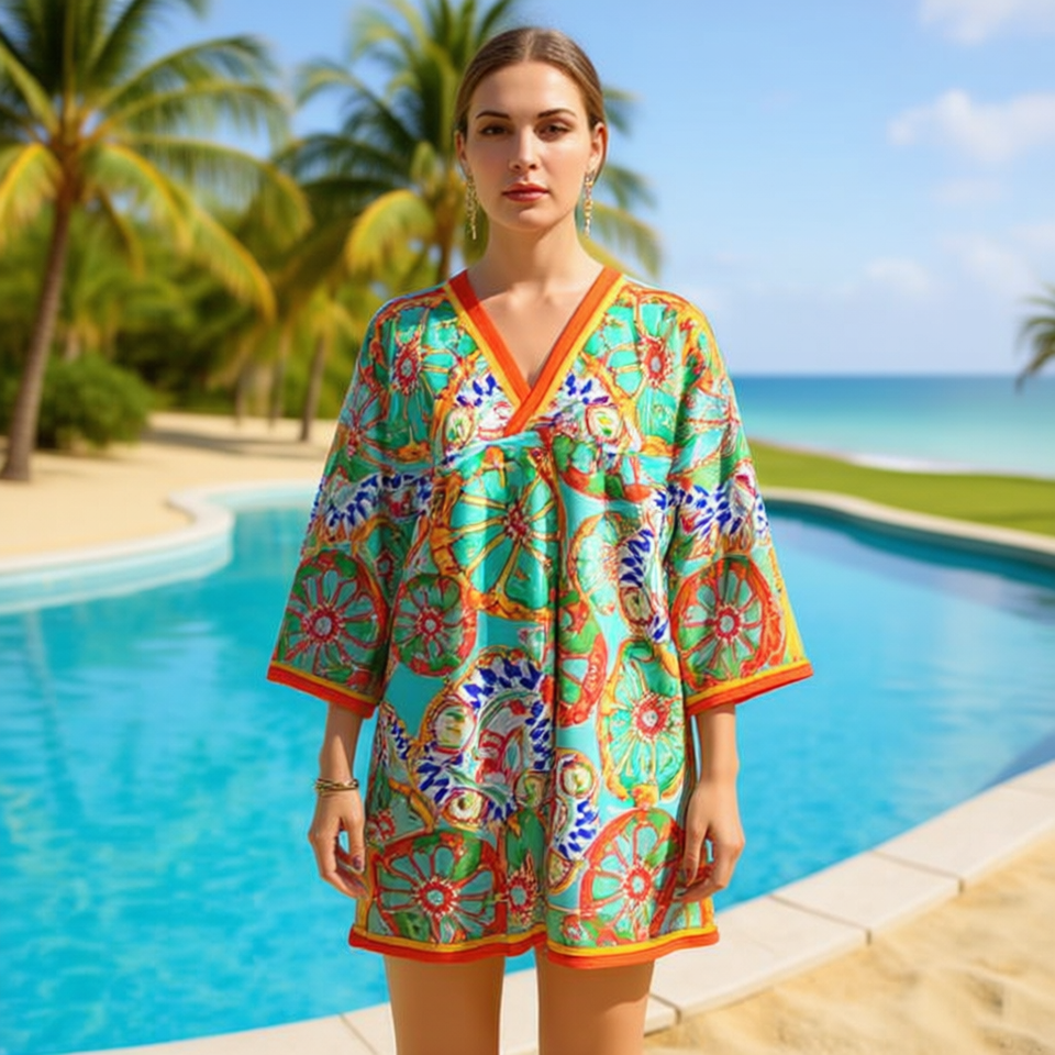 Chemise de plage style Wheel Style à manches mi-longues 88x54cm, haut de maillot de bain cache-cœur à col en V