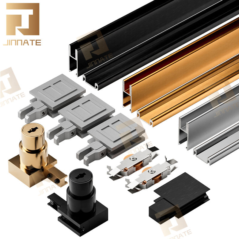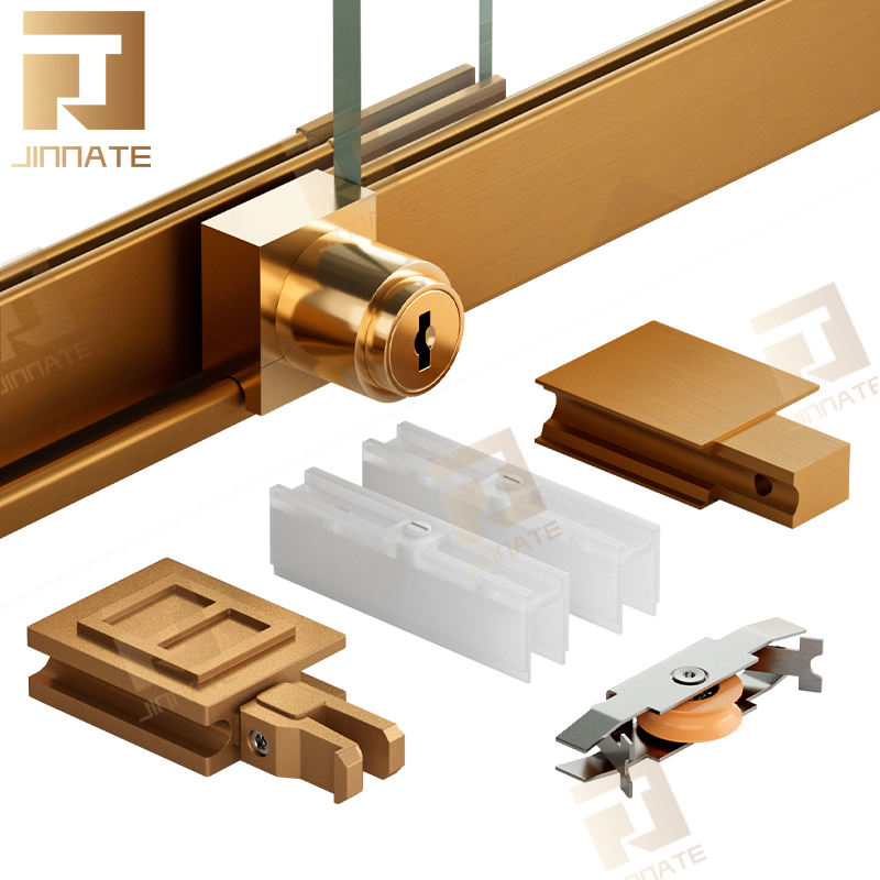 Ensemble de système de roues meubles suspendus quincaillerie de salle de bain accessoires en verre raccords de rangement muraux portes coulissantes armoires