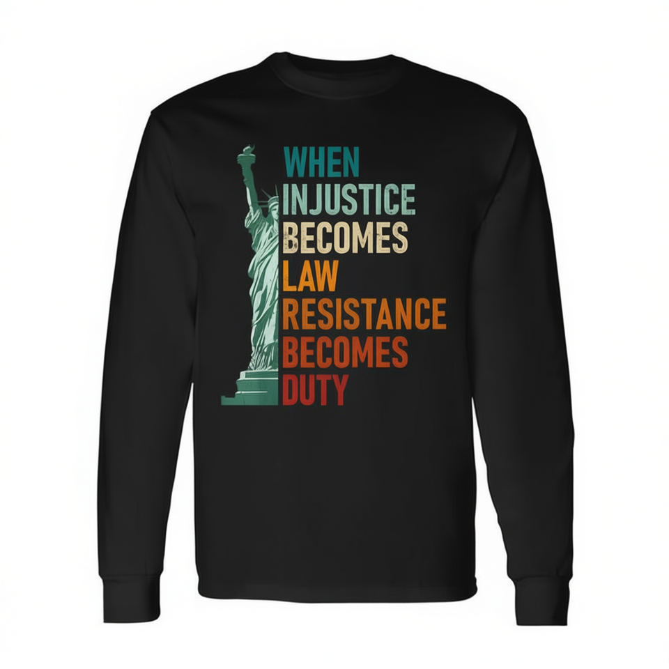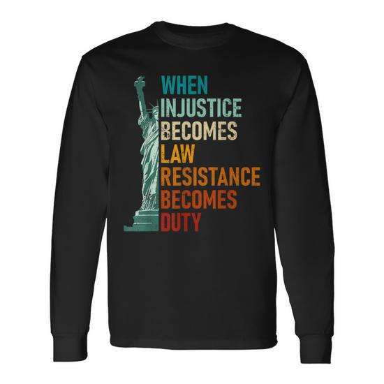 Quand l'injustice devient la loi, la résistance devient un devoir T-shirt à manches longues unisexe à col rond pour adulte, vêtements promotionnels