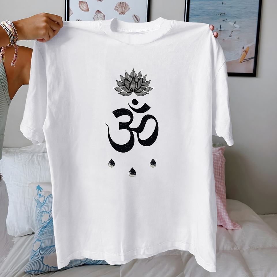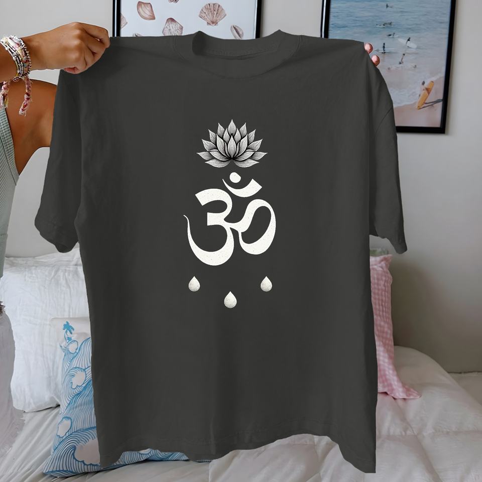 Whether Om symbol with lotus flower pure cotton women's Tshirt comfort fit