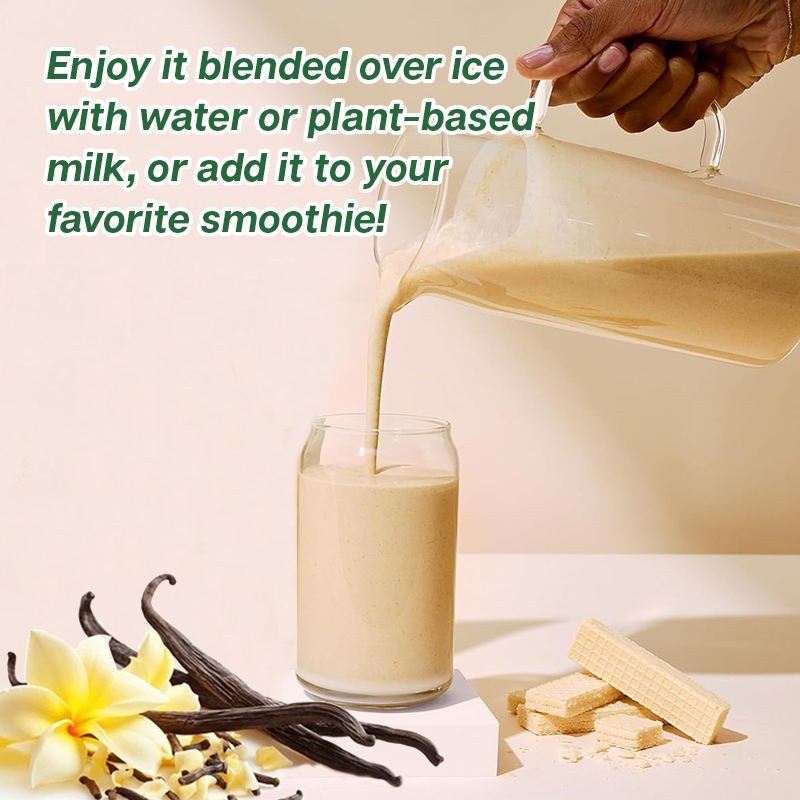 Ingrédient principal:Mélange d'enzymes DigeZyme : Alphas-amylase, protéase neutre, lactase, cellulase, lipase. Isolat de protéine de lactosérum, arômes naturels, gomme de guar, gomme xanthane, silice, acésulfame de potassium, sel, racine de betterave (colorant), sucralose et acide malique, acides aminés. Contient : Lait.