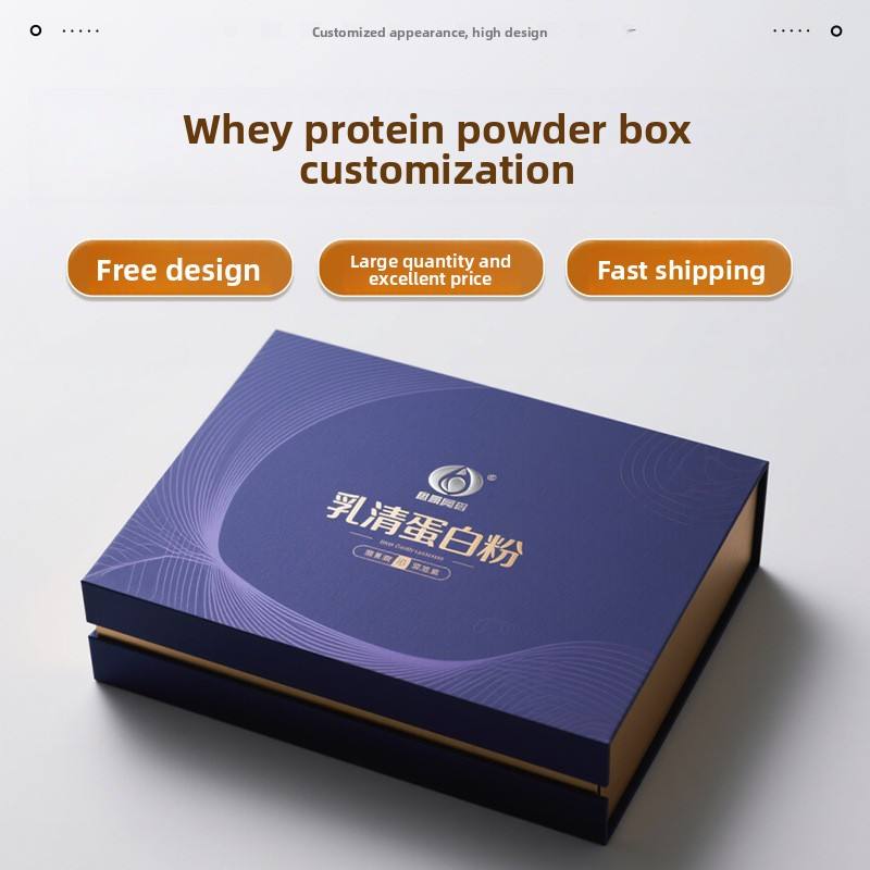 Boîte cadeau de protéines de lactosérum personnalisée, emballage écologique et recyclable pour compléments alimentaires avec options de décoration