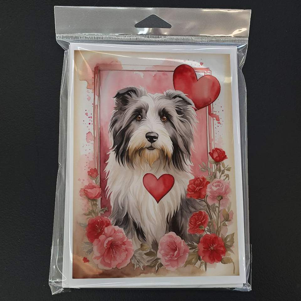 Lunatique A7 Taille 5x7 Bearded Collie Valentine Roses Cartes de notes vierges Lot de 8 avec enveloppes Cartes de voeux