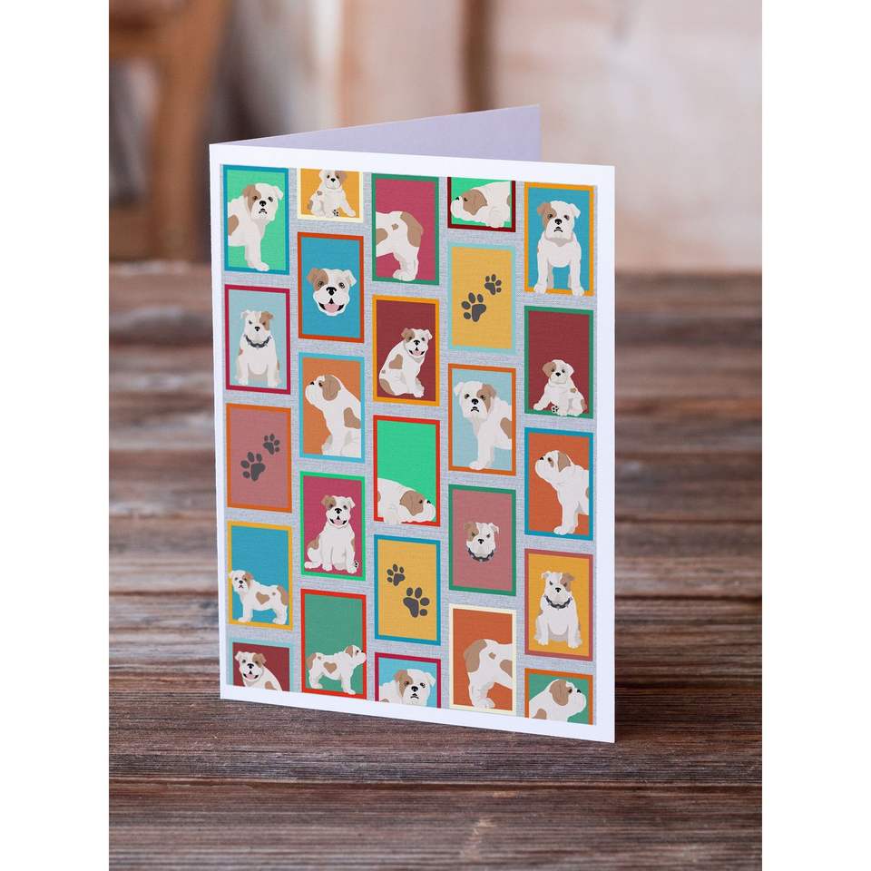 Lunatique A7 Taille 5x7 Cartes Vierge Paquet de 8 Lot de Piebald Bulldog Anglais Design avec Enveloppes pour Voeux