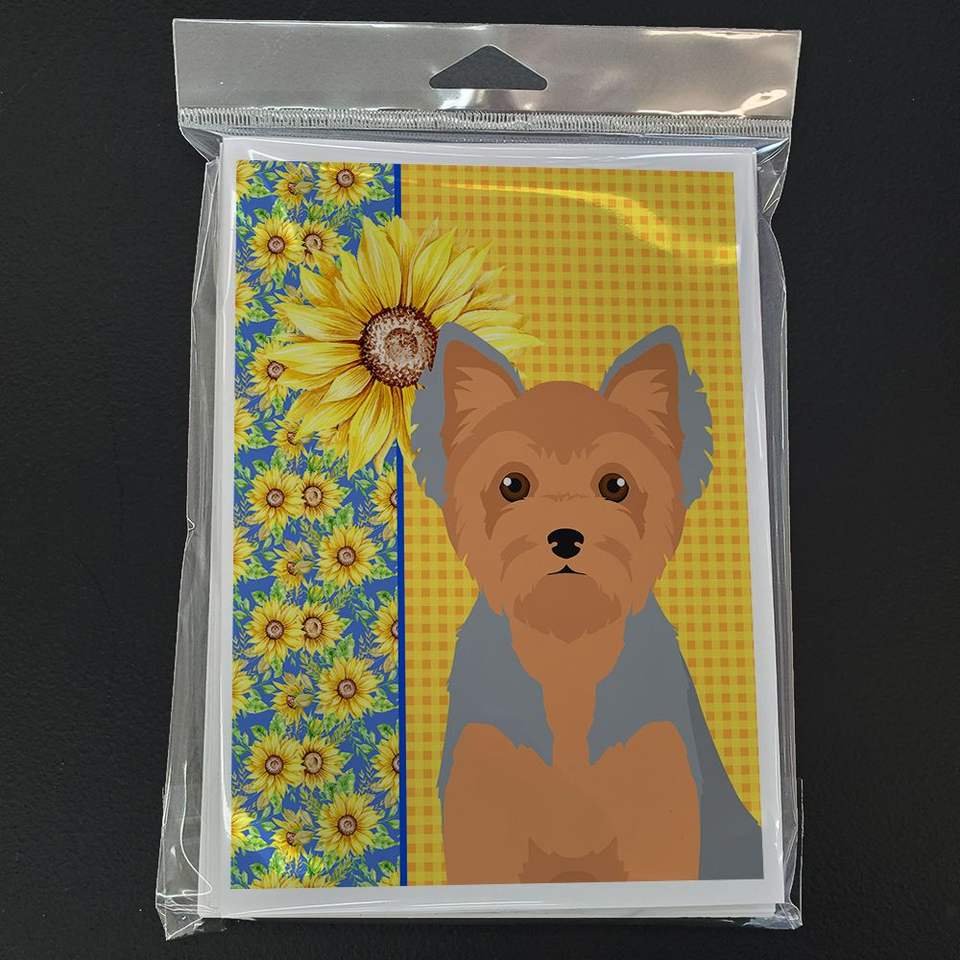 Whimsical Summer Sunflowers Blue Tan Puppy Cut Yorkshire Terrier A7 Size 5x7 Pack 8 Blank Greeting Cards Envelopes Notes Model