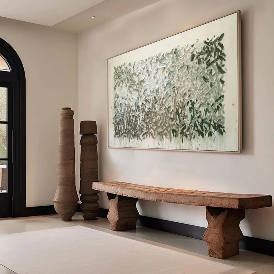 Peinture à l'huile abstraite texturée Paysage Vent Soufflé, Grande Toile Peinte à la Main, Art Mural Contemporain, Œuvre d'Art Abstraite