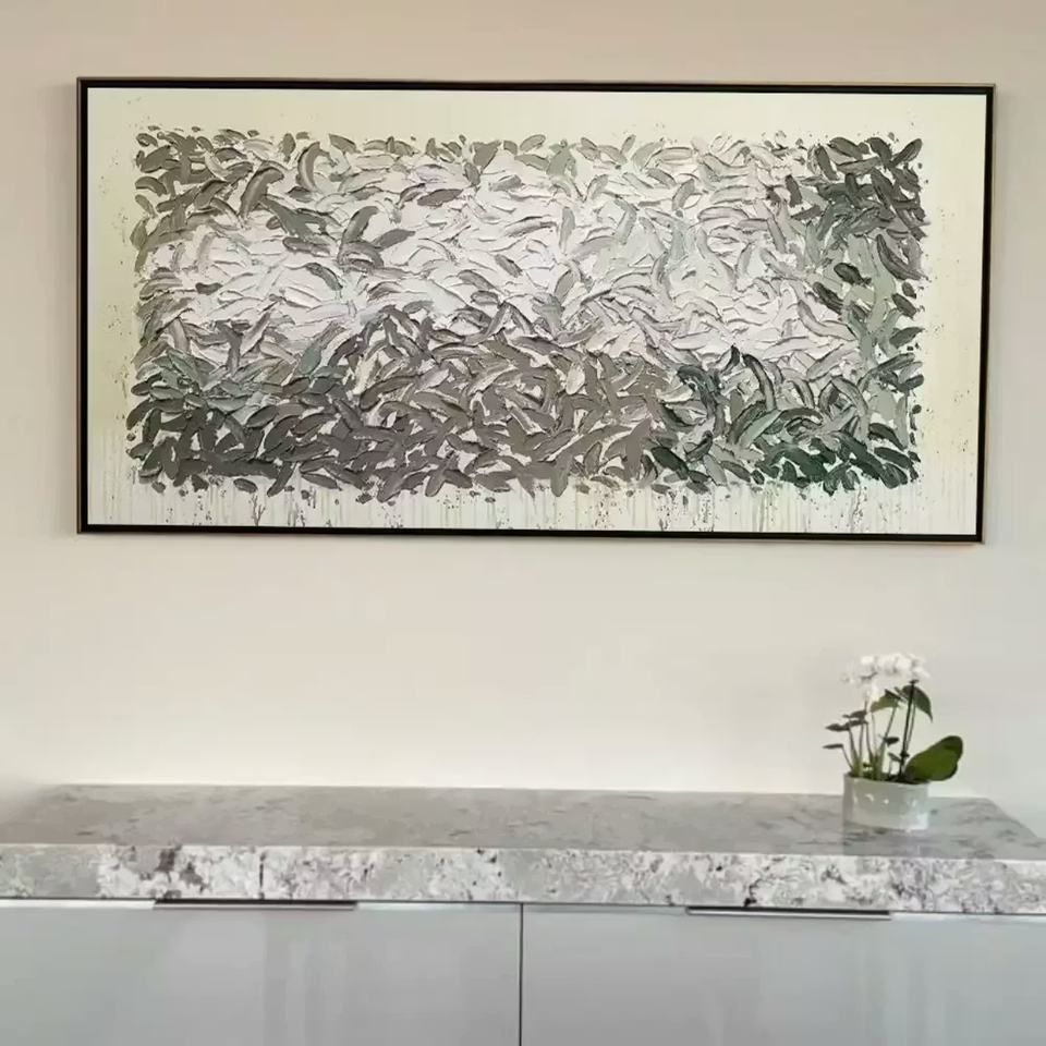 Peinture acrylique encadrée sur toile, texture abstraite, paysage naturel, effet impasto, peinte à la main, art mural pour salon et maison