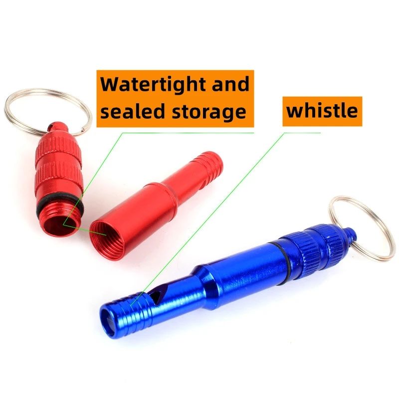 Porte-clés sifflet 2-en-1 multifonction avec étui à pilules, étanche et scellé, pour arbitres de sport et entraînement
