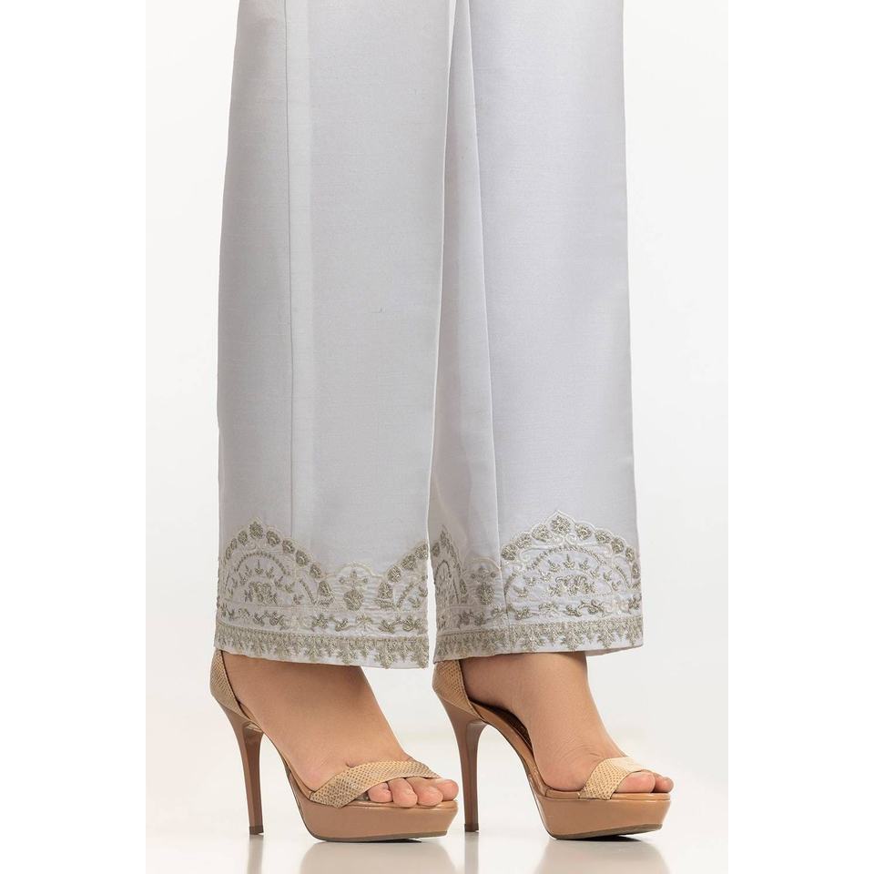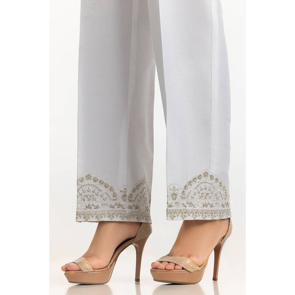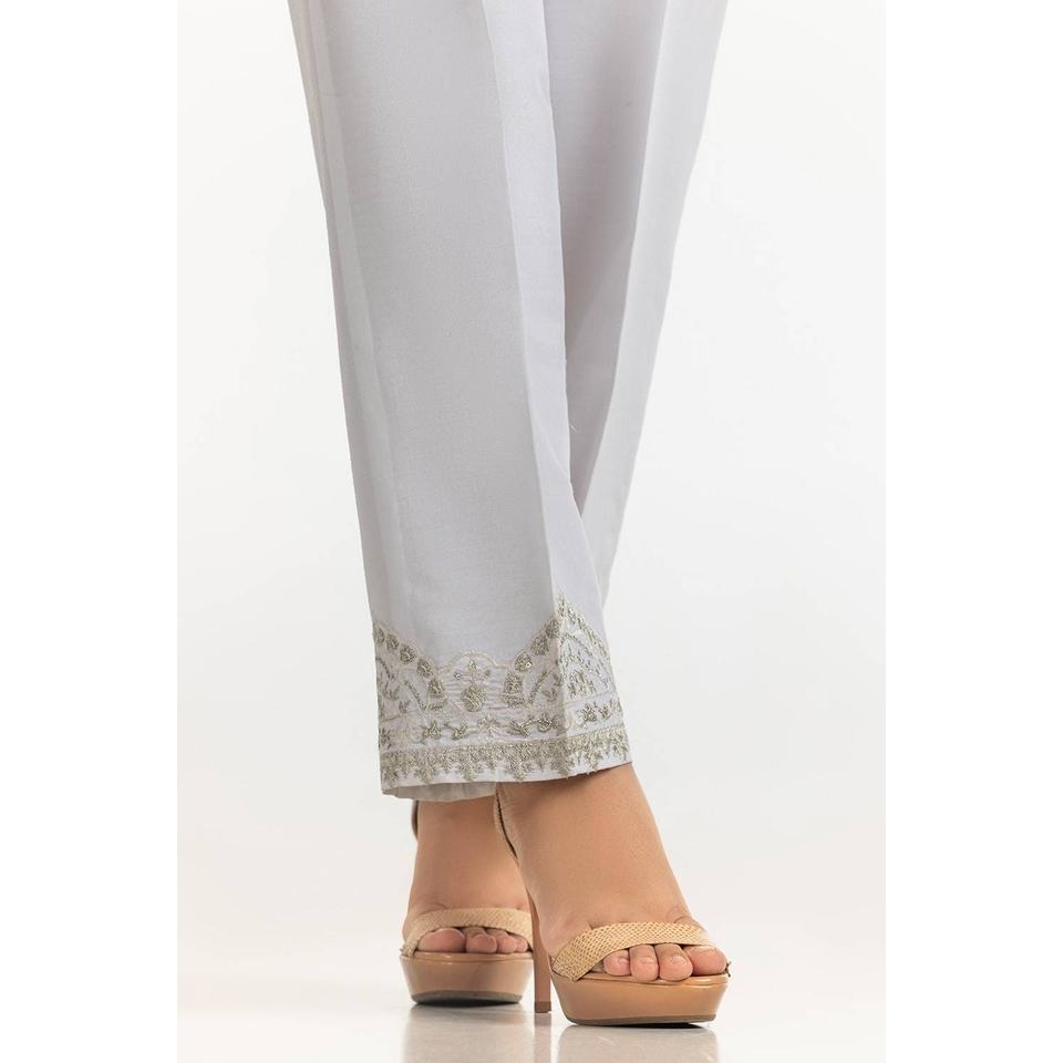 Pantalon large blanc 100% soie brute satinée, taille haute, brodé TR-24-24, respirant et confortable