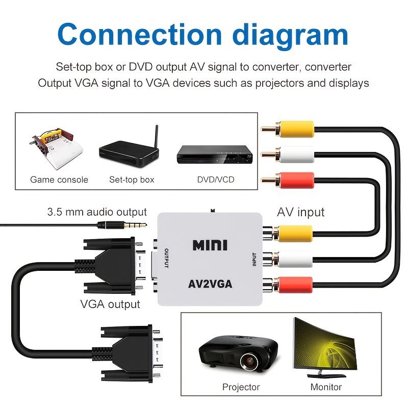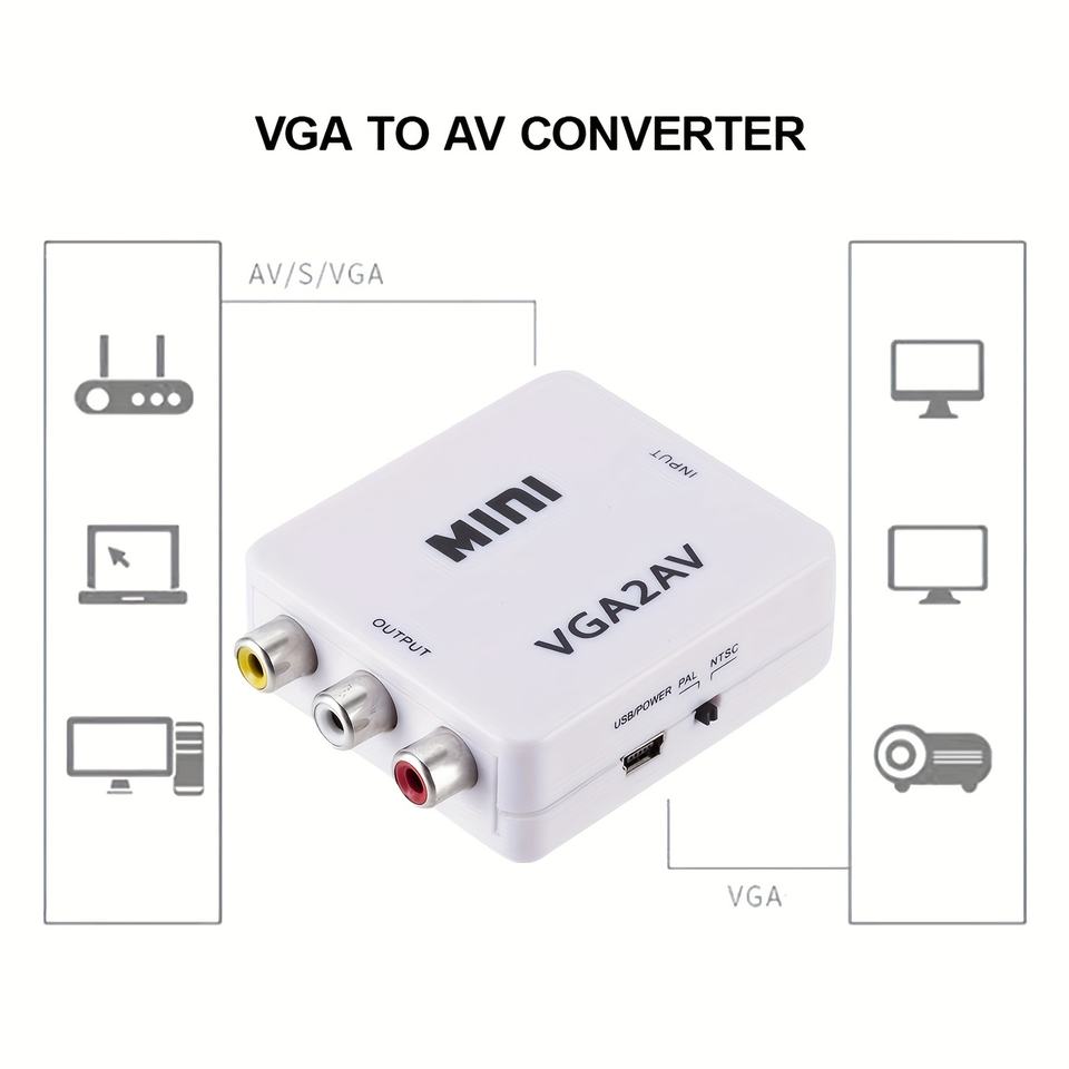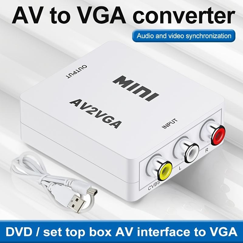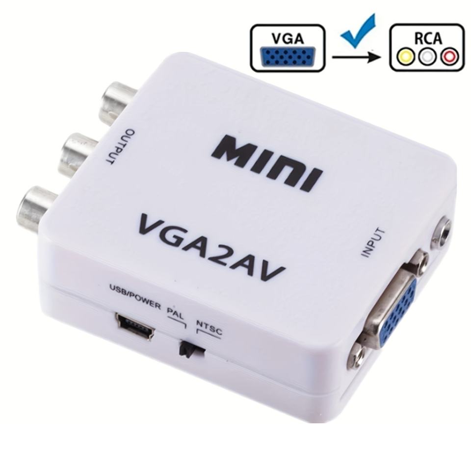 Convertisseur adaptateur Mini AV vers VGA blanc 1080P avec audio 3.5mm AV2VGA / CVBS + audio vers PC HDTV