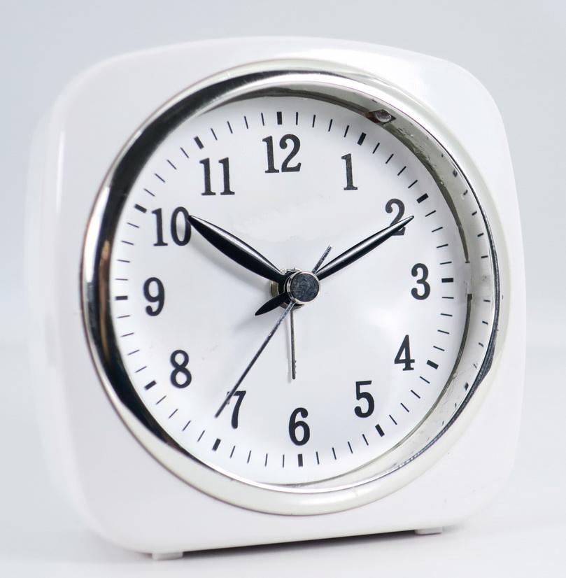 Réveil silencieux à quartz blanc de 3 pouces, mini carré, avec veilleuse pour la maison et le bureau