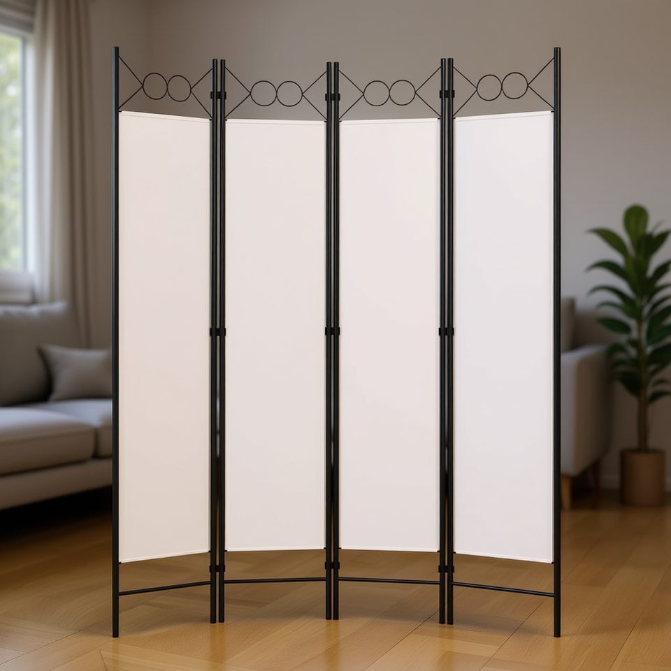 Paravent blanc à 4 panneaux 63x70,9 pouces, pliable, design minimaliste, structure en métal, décoration intérieure