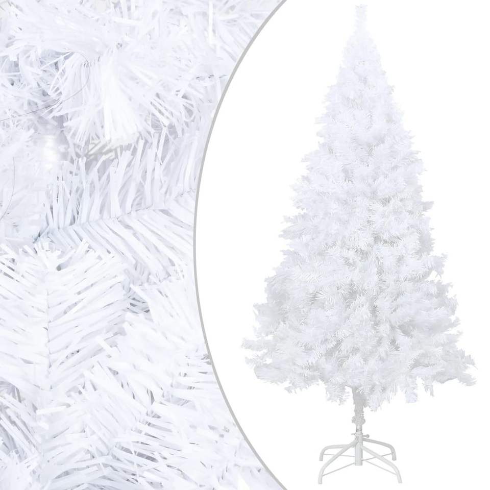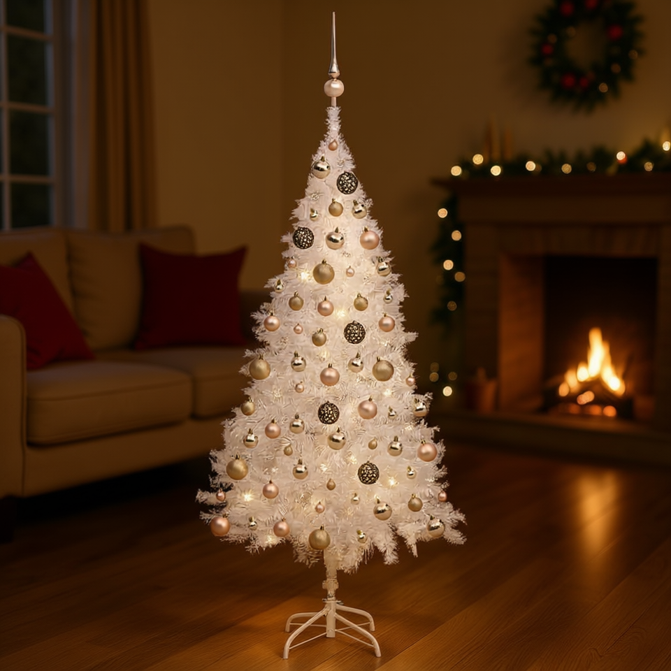 Sapin de Noël artificiel blanc en PVC de 47,2 pouces pré-éclairé avec un ensemble de boules, lumières LED chaudes, base sur pied pour intérieur