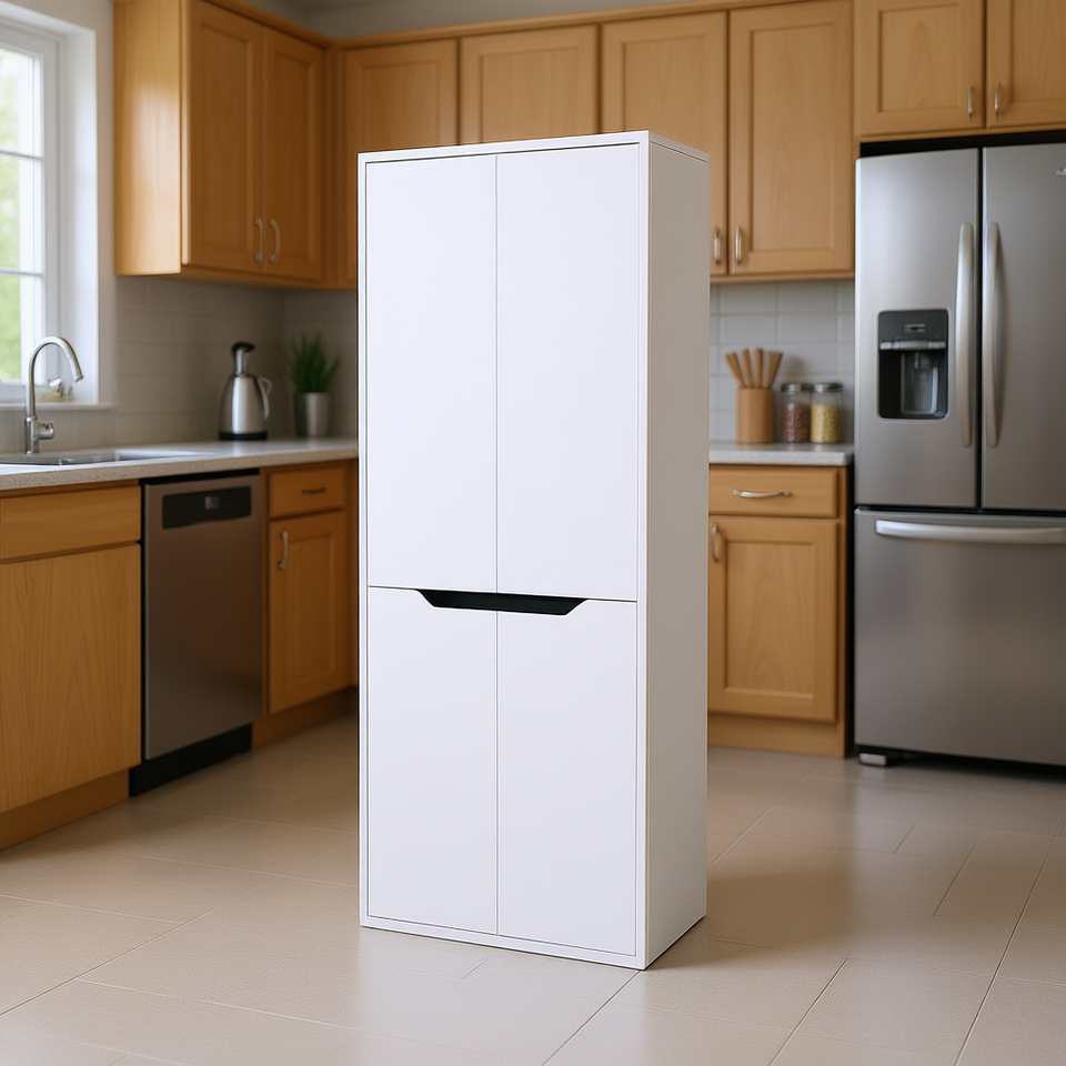 Armoire de cuisine blanche à 5 étagères, design minimaliste, autoportante, pour le rangement de la cuisine