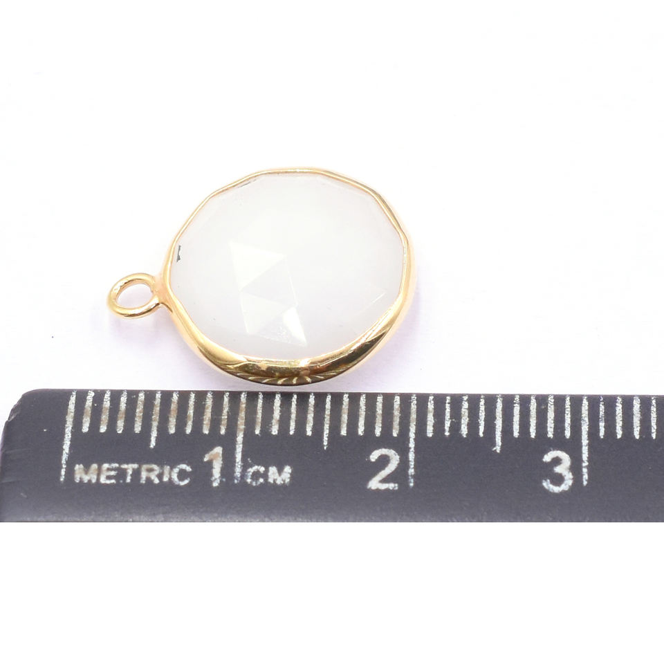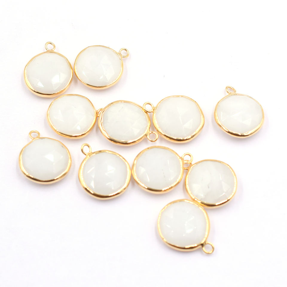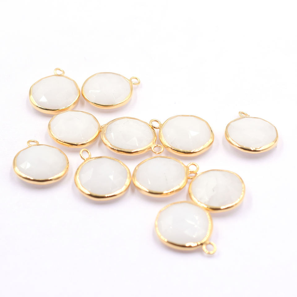 Nom de la pierre:Pendentif en agate blanche ronde avec monture argentée et plaqué or