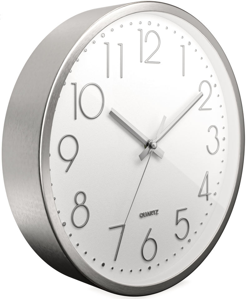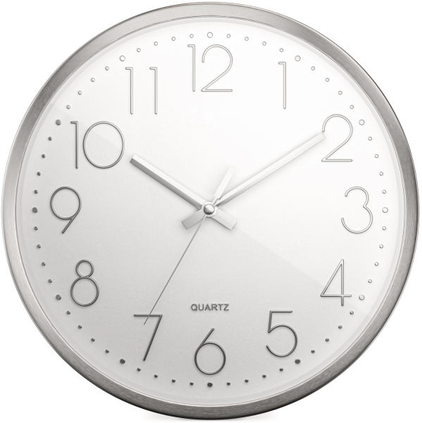 Horloge murale suspendue en aluminium blanc de 12 pouces avec chiffres 3D en métal, style nordique, mouvement à quartz, pour salon scandinave, galerie d'art lumineuse