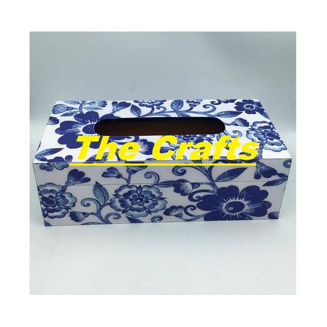 Boîte à mouchoirs en bois de couleur blanche et bleue pour salle de bain cuisine et porte-papier hygiénique porte-serviettes