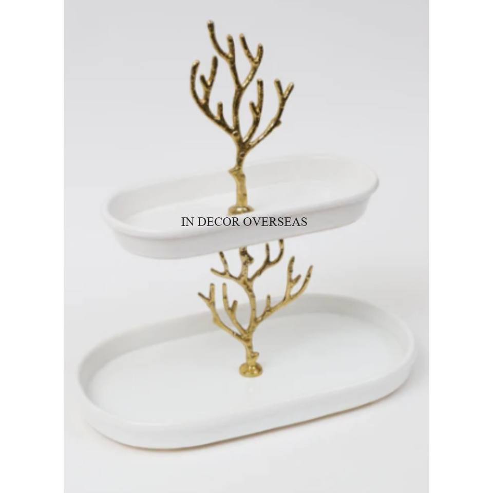 Support de gâteau en métal de haute qualité de concepteur de fantaisie Unique de couleur blanche et or pour les fournitures de fêtes de mariage et d'anniversaire