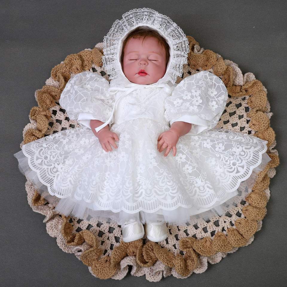White Baby Lace Wedding Dress Big Gauze Skirt O-Neck Collar Baptism for Princess 0-30 Months Baby Girls Christening Gown