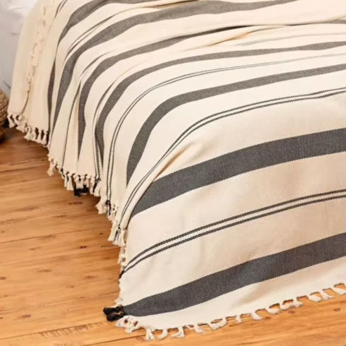 Couvre-lit en coton naturel à motif croisé noir blanc 100 pour cent Brochet tissé 280x300 cm 110x118 pouces