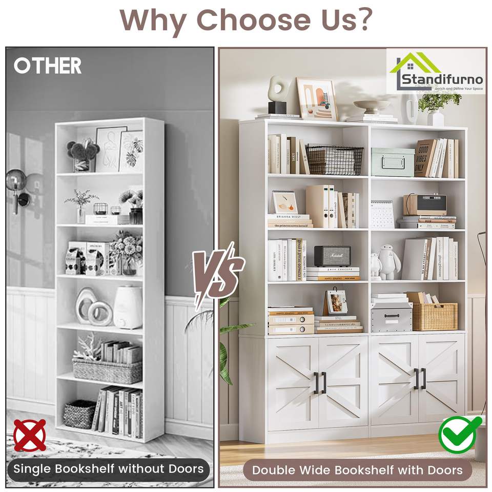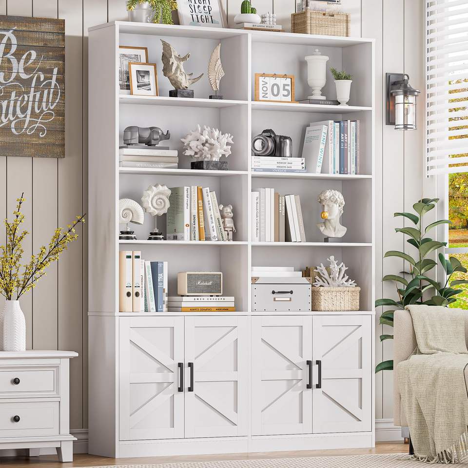 Bibliothèque blanche avec étagères ouvertes modernes sur pied et armoire de rangement pour salon, bureau à domicile, bibliothèque