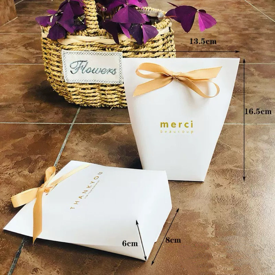 Nom du produit:Blanc Bronzage Merci sac de bonbons Français Merci Favors boîte-cadeau