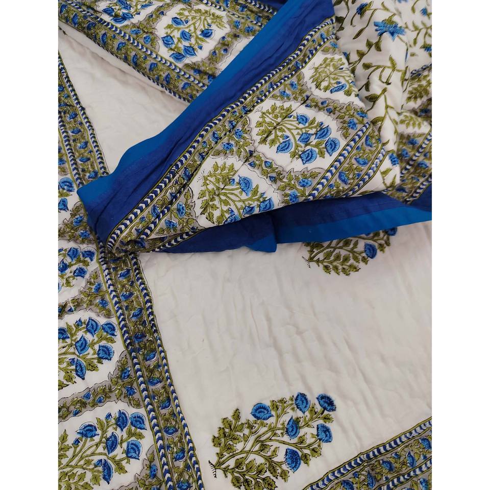Couette double réversible en coton 100% imprimée à la main au motif floral, style vintage, écologique, pour la maison