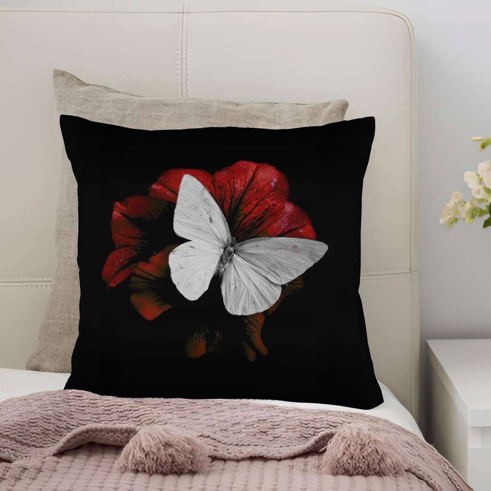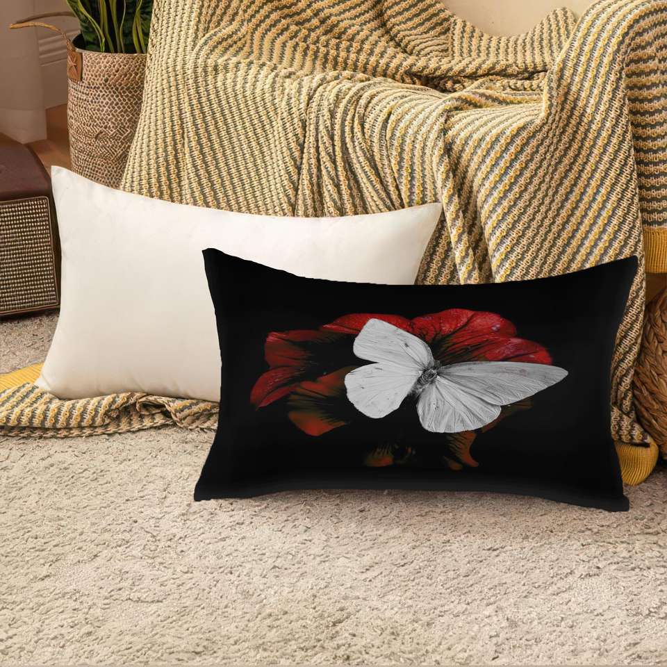 Coussin imprimé avec un papillon blanc sur une fleur rouge - Décoration de luxe moderne, 8"x16" - 20x40 cm