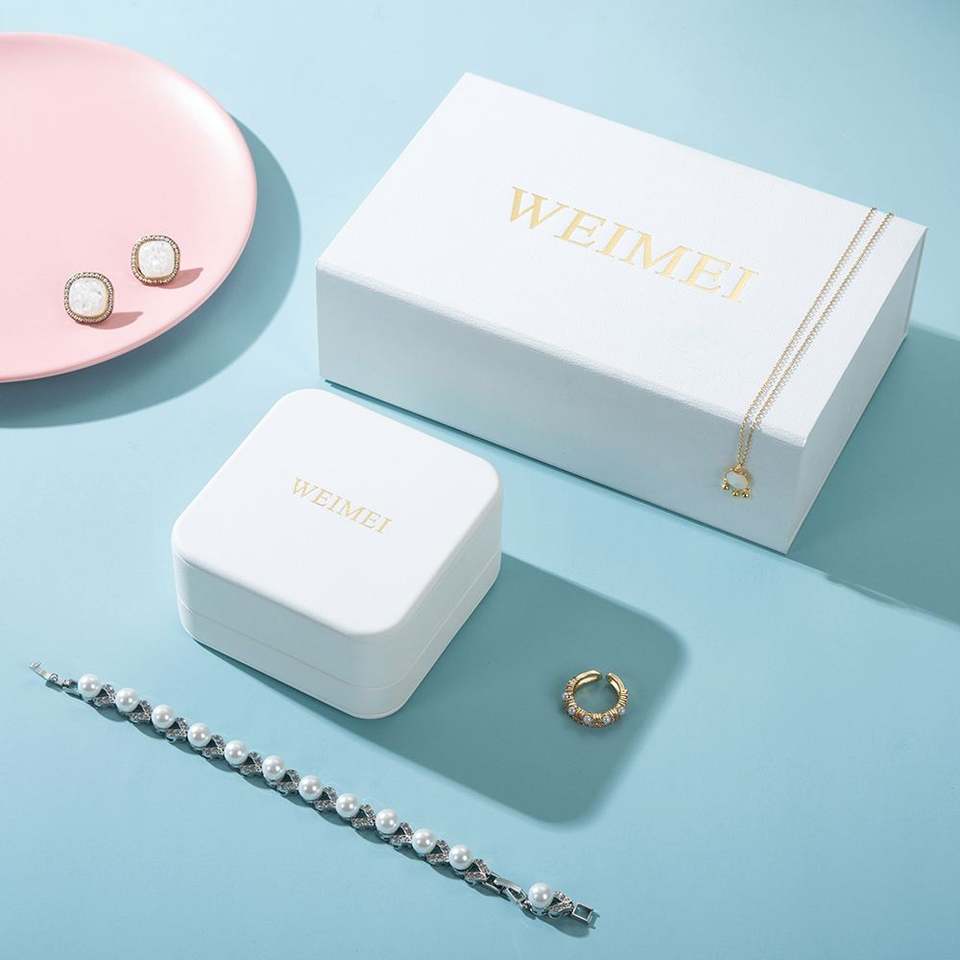 Boîte à bijoux en carton blanc, paquet de luxe, boîte à bracelet, collier, boucle d'oreille et bague avec logo personnalisé